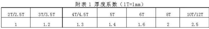 2.3 操作工时根据材料厚度不同设置定额工时,以2mm厚度的钢板作为计算标准,其余依对应厚度系数修正,详见附表1。